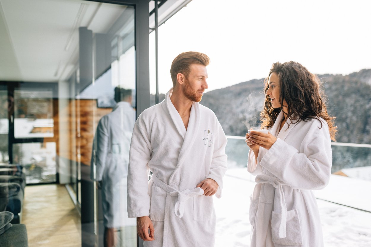 After a day in the mountains around Hafling, you might fancy a little spa break. If so, we recommend a visit to our Finnish sauna with a view of Meran and Environs, heated to 90°C. If you prefer a gentler approach, the organic sauna is the right choice for you. With a temperature of 60°C and a humidity level of 45%, this type of sauna has a particularly low impact on the body and lets you linger for longer. Then, discover the 70°C warm brine sauna with an ultrasonic nebuliser that produces a fine brine. The particles penetrate deep into the respiratory tract. This has a cleansing and healing effect and is particularly good to treat and prevent colds and for skin care.