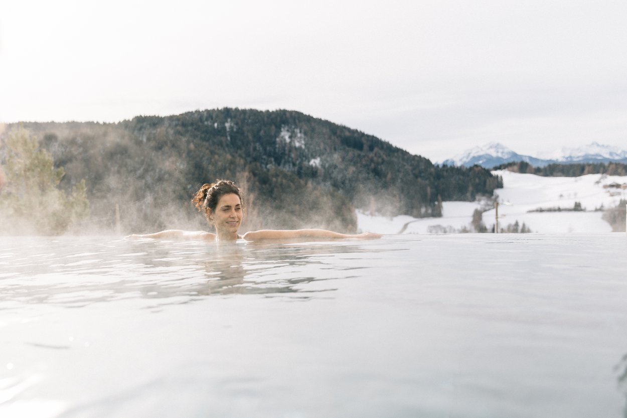 Are you dreaming of a hotel with infinity pool in South Tyrol? You’ve come to the right place! The water soothes, refreshes, and gently caresses your body, while your gaze wanders over the breathtaking natural scenery and mountain world in front of your eyes. Thanks to a gate, you can enjoy both indoor and outdoor sections of our panoramic pool, heated all year round, and enjoy the amazing view while swimming outside. In summer, everything’s lush and green. In winter, the snow-covered landscape enchants you as you float in the warm water. Or maybe one of our three saunas will tempt you back inside?