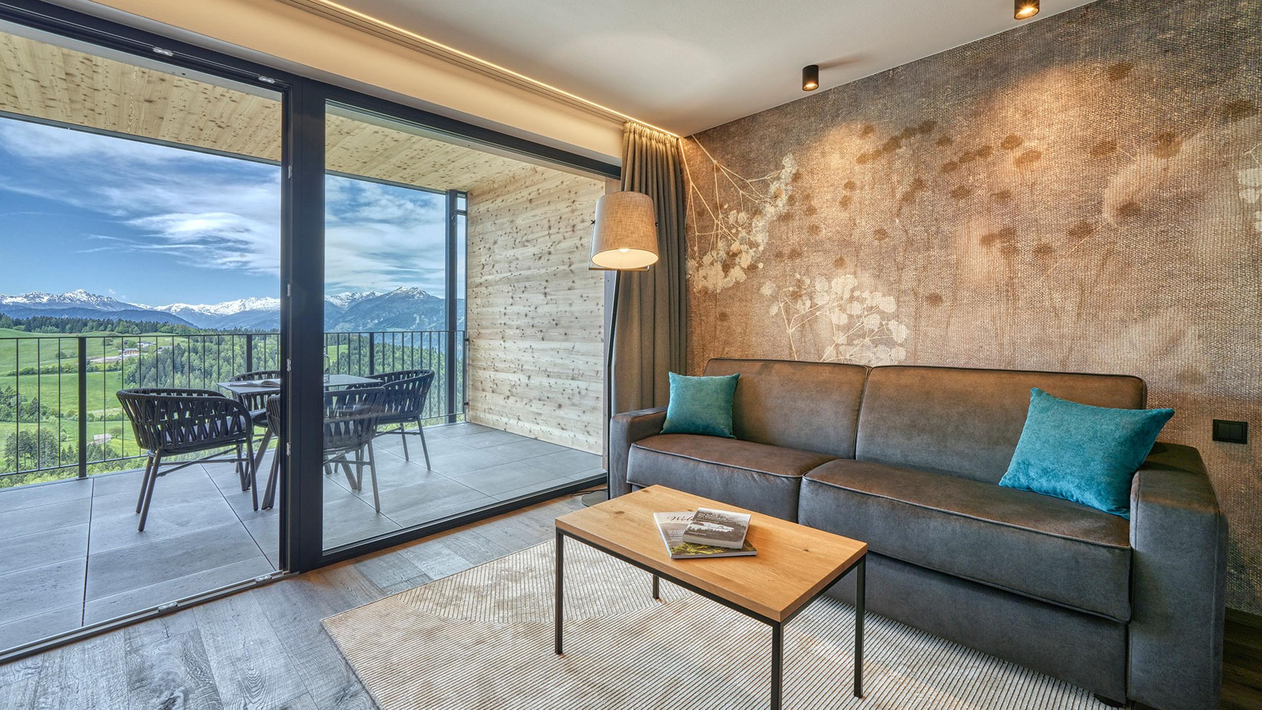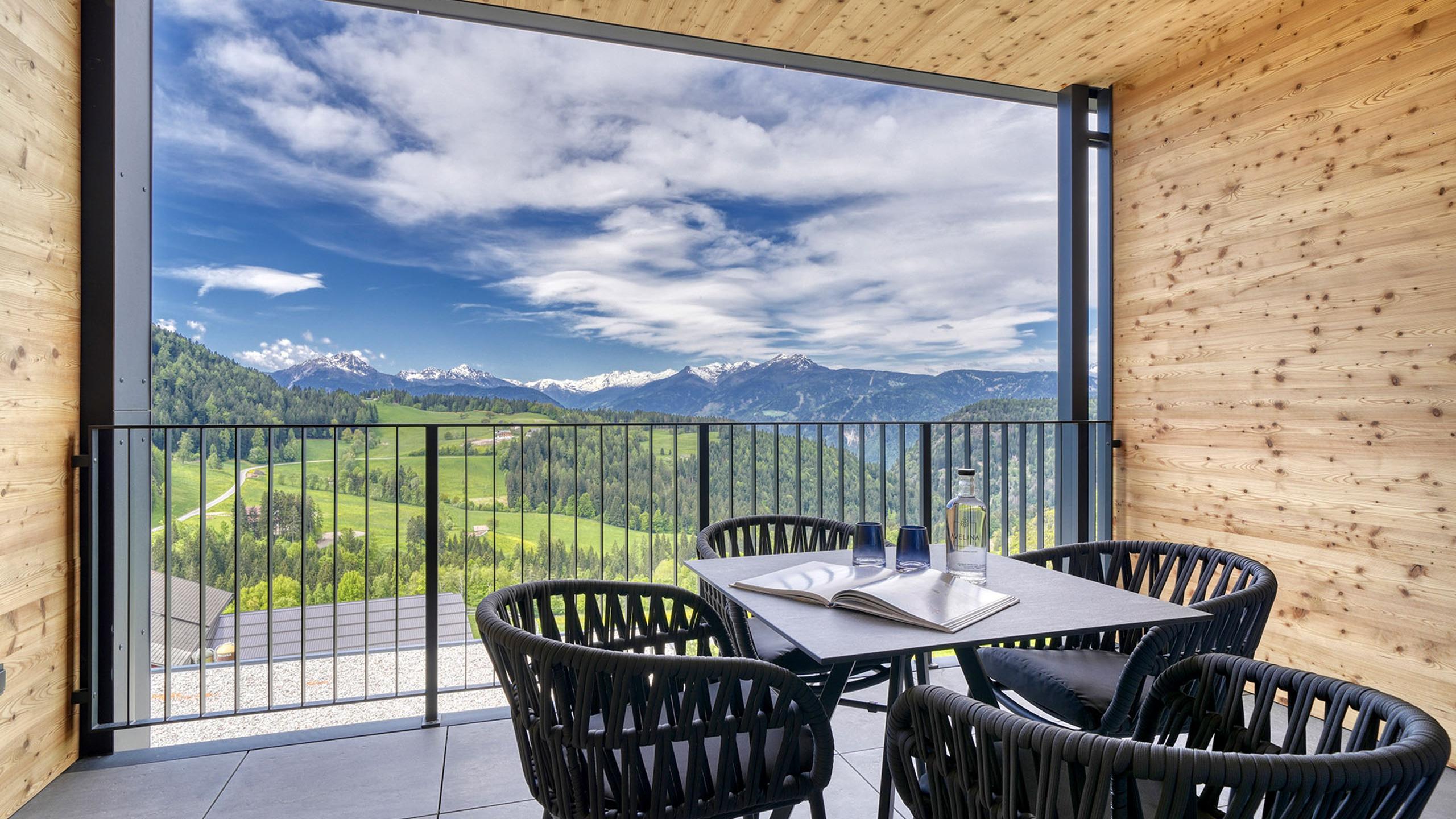 Toccate le stelle con un dito: la Junior suite Stellaria dispone di un balcone di 13 m² che offre un panorama da sogno di giorno e di notte. Non è consentito portare animali domestici.