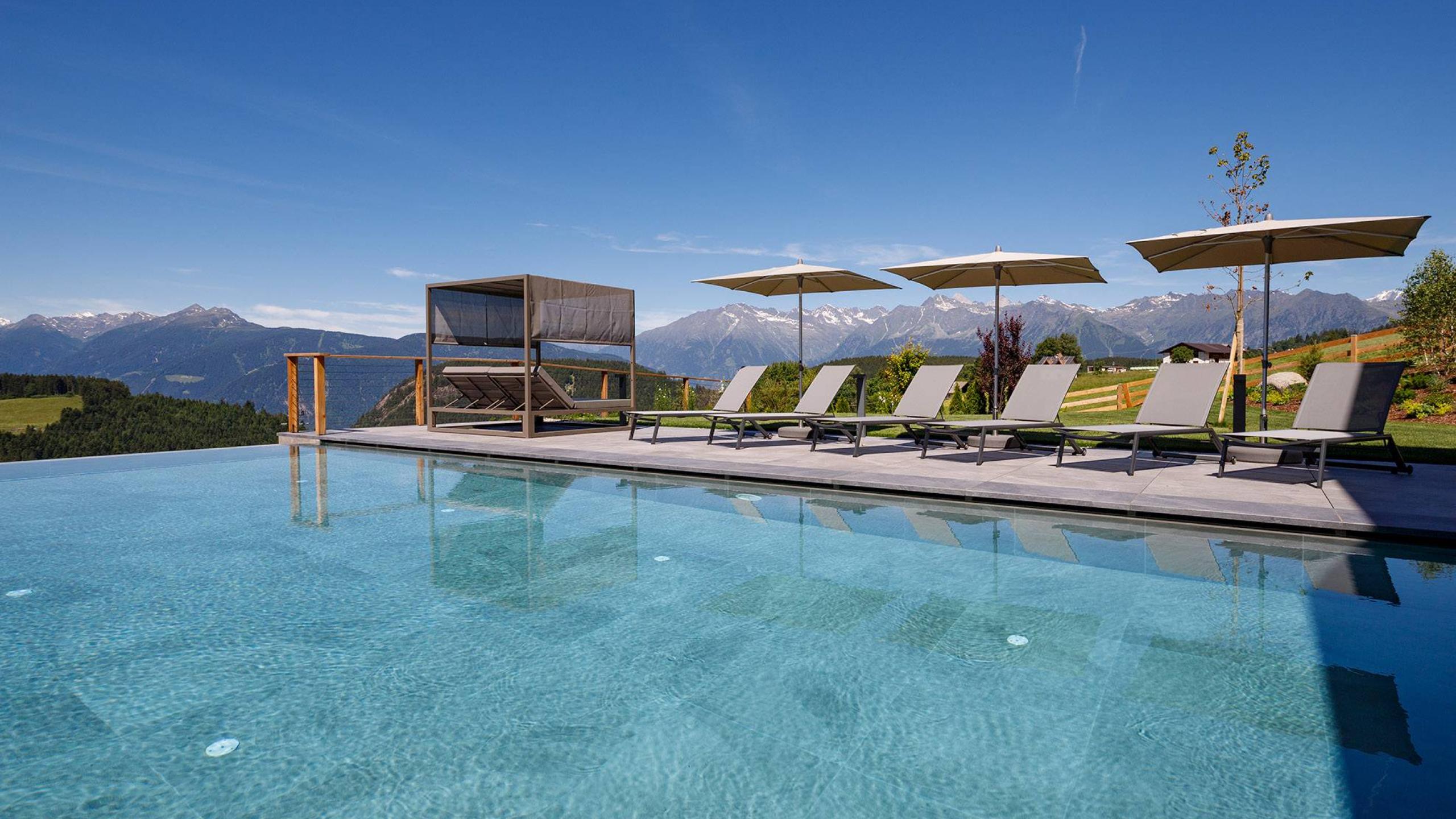 - Infinity-Indoor- und Outdoorpool (ganzjährig beheizt auf 32 °C) mit traumhafter Aussicht